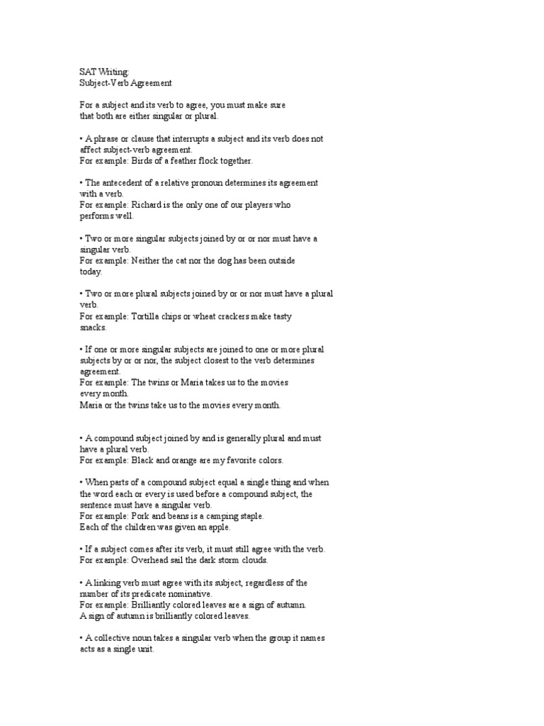 Sat Writing Subject Verb Pdf Grammatical Number Subject Grammar